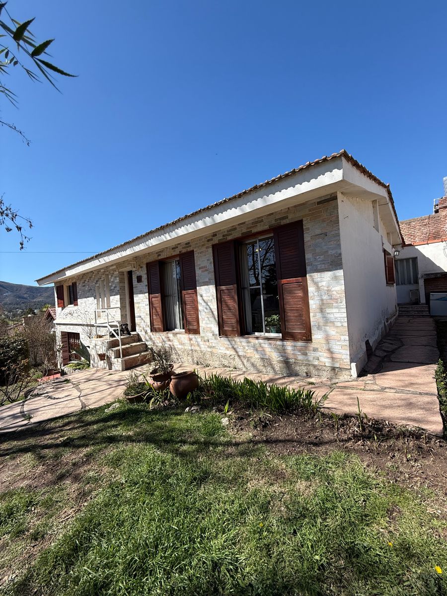 Casa en venta con Escritura y Planos - Vista a las Sierras Hermosa propiedad en excelente estado, con 3 dormitorios con placards, 2 baños, recibidor, living comedor luminoso, amplia cocina comedor con desayunador y lavadero. Exterior con patio con asador y baño, pileta con vista panorámica a las sierras, gran fondo libre con frutales y posibilidad de ampliar construcción. Garage adaptable como estudio/dormitorio. Gas natural Cloacas Agua corriente Calefactores en todos los ambientes ¡Un hogar listo para mudarse y disfrutar de la naturaleza sin perder comodidad